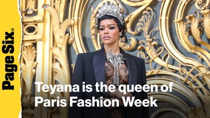Teyana Taylor is the queen of Paris Fashion Week in pearly crown and sheer lace skirt set