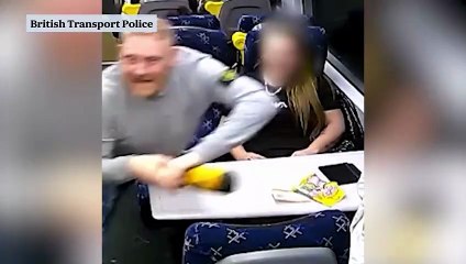 Moment man attacks stranger with a bottle on a Glasgow train service
