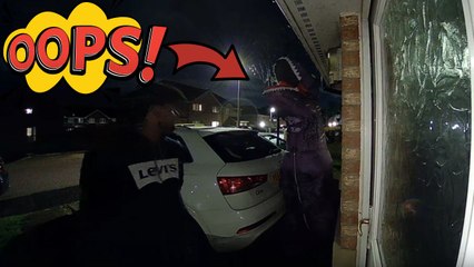 Just Eat driver loses it when a dinosaur jumps out of nowhere at the doorstep