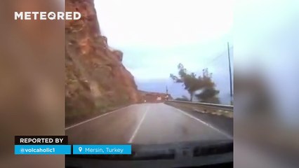 A massive landslide surprises a driver in Turkey