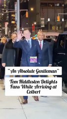 Tom Hiddleston Charms Fans Outside Colbert, Promises to Stop and Say Hello on His Way Out
