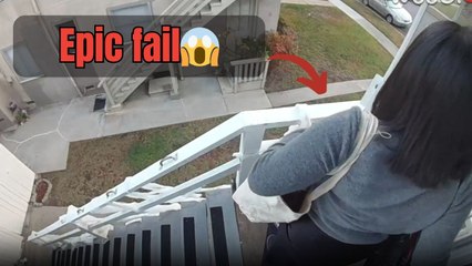 Ring camera footage captures unlucky morning moment as woman falls on her front steps