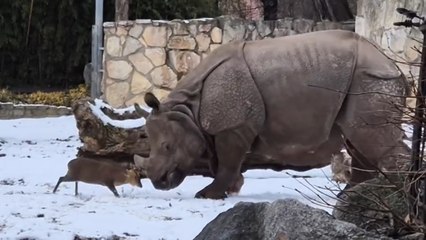 Il video più dolce che vedrete oggi: il piccolo cervo sfida un rinoceronte da 1,7 tonnellate