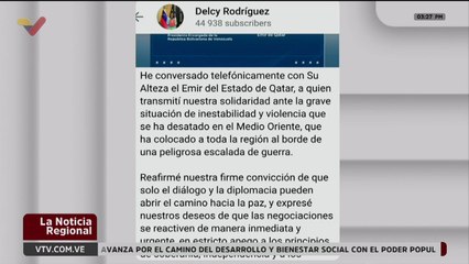 Presidenta (E) envió su solidaridad al Emir de Qatar ante la grave situación en el Medio Oriente