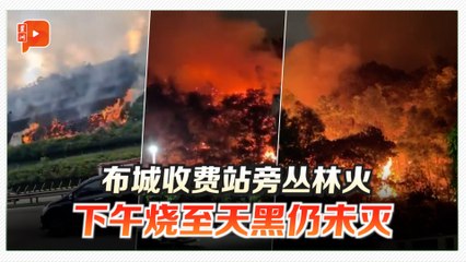 火光冲天!布城收费站旁丛林燃烧 消拯员至傍晚仍在灌救