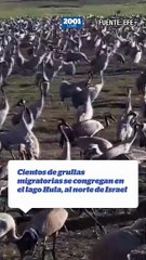 Cientos de grullas migratorias se congregan en el lago Hula, al norte de Israel