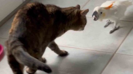 Parrot snips cat who comes in his way *HILARIOUS*