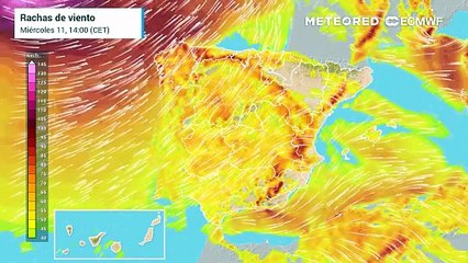 Rachas de viento en superficie previstas por el modelo europeo para los próximos días
