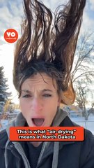 Woman's hair turns to ice like a crown outdoors in frigid North Dakota