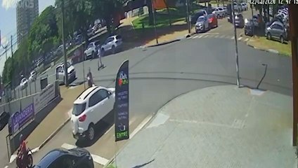 Câmera registra momento de acidente entre moto e Ecosport no Centro de Cascavel