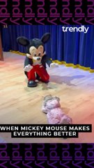 Heartwarming scene unfolds after toddler stumbles while greeting Mickey Mouse