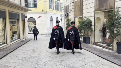Carabinieri in alta uniforme nel centro di Sassari, l'eleganza non passa inosservata