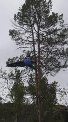 Man Attempts Human Flag on Tree Eight Meters Above Ground