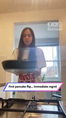First Pancake Flip Goes Very Wrong – Hot Fail! 😅|| Heartsome 💖