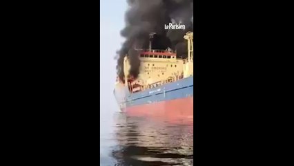 Guerre au Moyent-Orient : un pétrolier en feu dans le détroit d'Ormuz