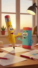 a cute conversation between Pencil and eraser