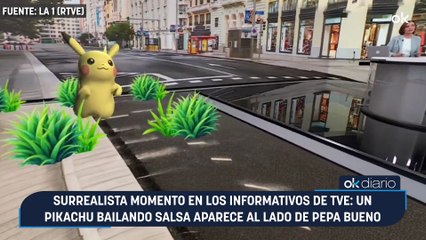 Surrealista momento en los informativos de TVE: un Pikachu bailando salsa aparece al lado de Pepa...