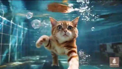 Mama Cat Saves Kitten Falls Into the Swimming Pool