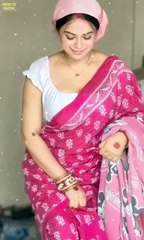 Pink Printed Cotton Saree with White Cotton Blouse Deep | Simple & Elegant Traditional Look