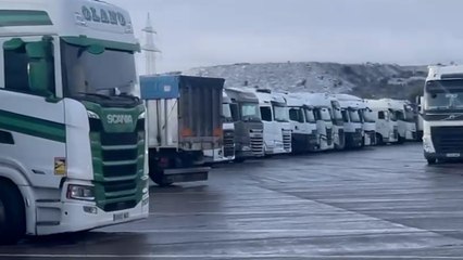 Cientos de camiones de reparto, inmovilizados por la DGT ante la previsión de nevadas