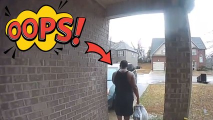 Gentleman slips and falls after taking out trash in rain