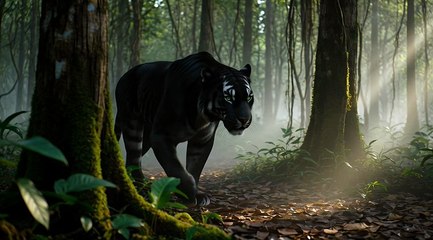 Rare Black Tiger Walking in the Forest