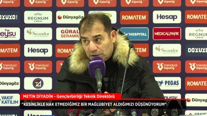 Gençlerbirliği Teknik Direktörü Metin Diyadin: Mağlubiyeti hak etmedik