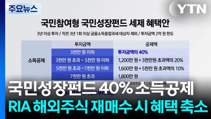 국민성장펀드 40% 소득공제·RIA 해외주식 재매수 혜택 축소 / YTN