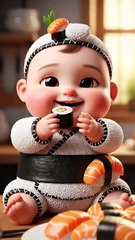 دنیا کا سب سے کیوٹ سوشی بیبی 😱 Pixar Style#CuteBaby #SushiBaby #ViralVideo #3DBaby #PixarStyle...