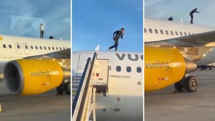 Un giovane si arrampica sul tetto di un aereo e blocca il decollo: volo in ritardo di due ore