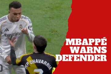 Kylian Mbappé confronts a defender after teammate Rodrygo gets shoved