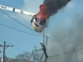 In sechs Metern Höhe: Arbeiter baumelt von brennendem Kran