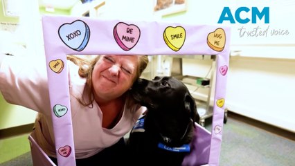 Smooch-a-pooch booth set up at hospital for Valentine’s Day