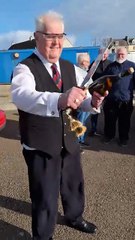Sabrage demonstration by Michael Booker at Lybster Men's Shed