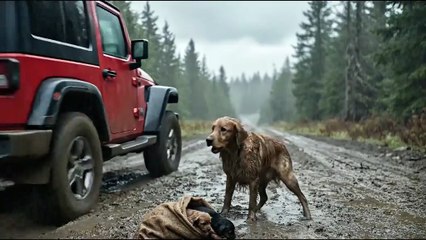 A family of dogs was trapped in a desperate situation on a lonely road during a torrential...