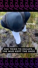 Girl Struggles To Pull Free From Mud Before Slipping Back Into It