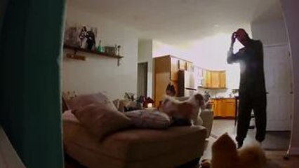 Dog Jumps Toward Man and Takes Tumble