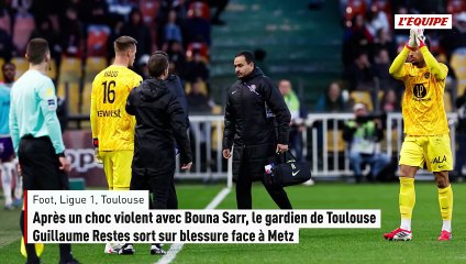 Après un choc violent avec Bouna Sarr, le gardien de Toulouse Guillaume Restes sort sur blessure...