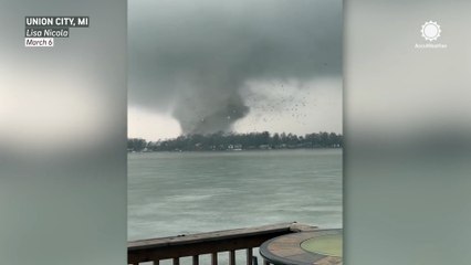 Powerful tornado sends debris flying in Michigan