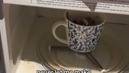 Mug brownie ends in a total mess as spoon was left inside the mug