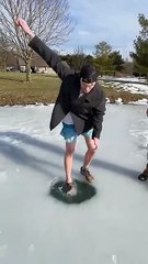 Beginner skateboarder struggles to stay balanced and ends up taking a tumble instead