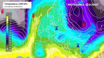 Mappa relativa alla temperatura prevista in quota