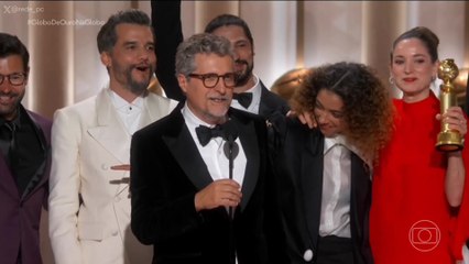 Momento em que "O Agente Secreto" vence Globo de Ouro de melhor filme internacional + discurso...