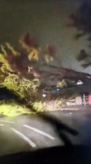 Fallen tree outside Trenance Learning Academy during Storm Goretti