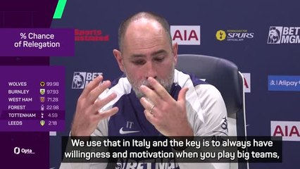 Tudor wants Spurs to adopt 'small team mentality' in relegation fight