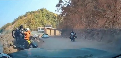 🇨🇳 Chine : Une motarde perd le contrôle et tombe dans un ravin en montagne - Elle s'en sort indemne