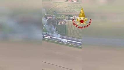 Scontro fra cisterne piene di gas: incendio in autostrada