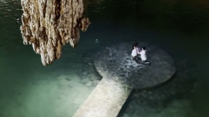 Guy takes his girlfriend on vacation and pops a question in a cenote