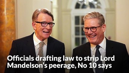 Officials drawing up legislation to remove Lord Mandelson's peerage, No 10 says