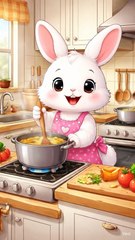 Cute Bunny Chef in Cozy Kitchen 🐰🍲